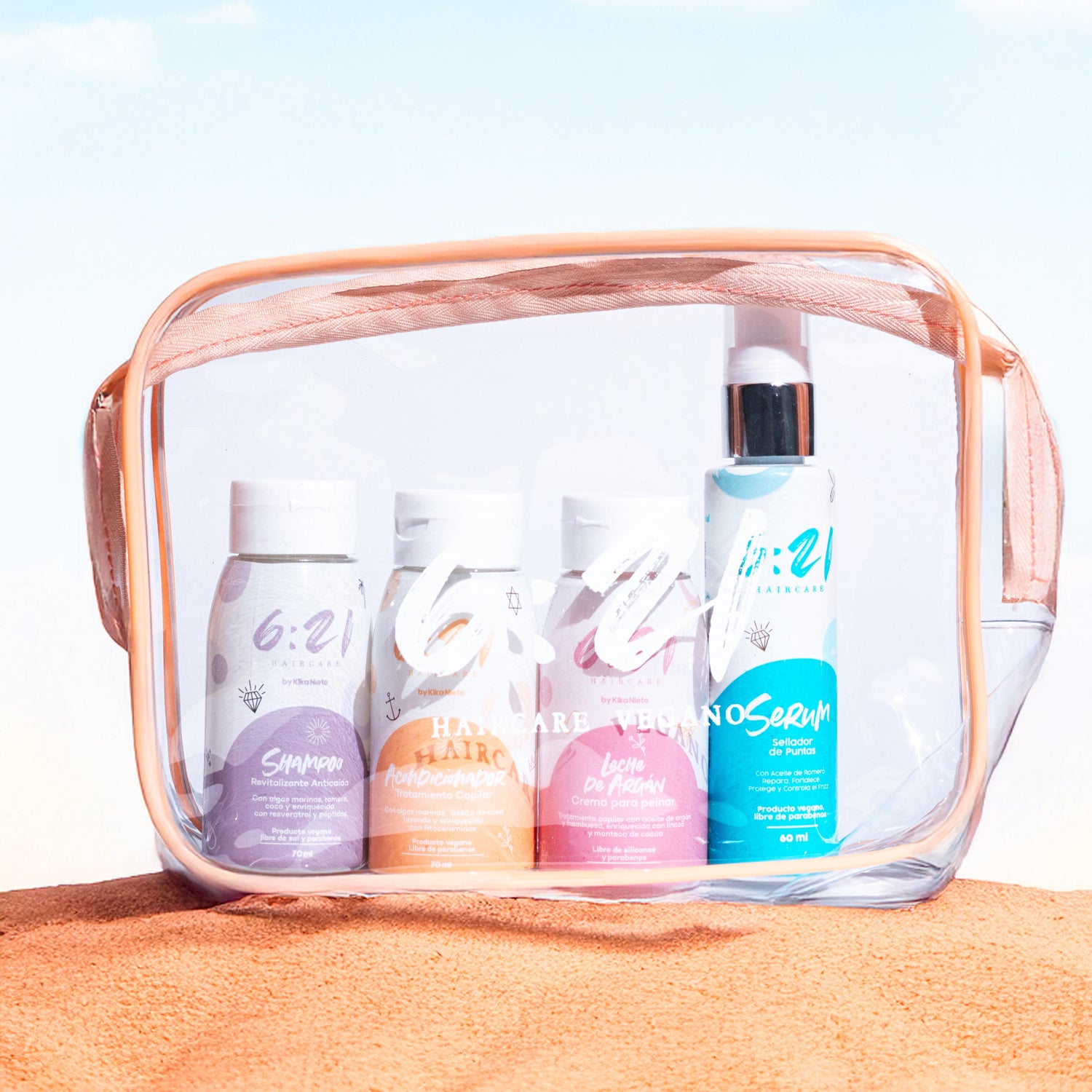 Sabemos que cada viaje merece su propia rutina de cuidado, por eso creamos el Kit Viajero 6:21. Una versión práctica, ligera y poderosa de tus productos favoritos, lista para acompañarte a todos lados.Ideal para llevar en la maleta, el bolso o la cartuchera de mano, sin sacrificar espacio ni resultados.