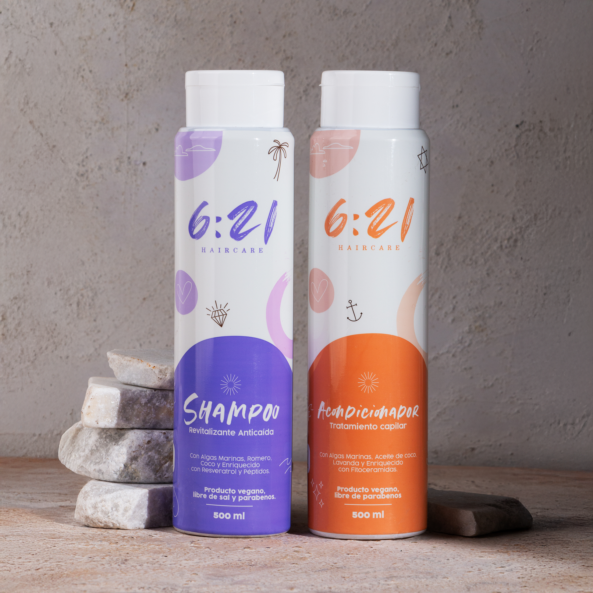 Experimenta el dúo perfecto para una limpieza y suavidad incomparables con nuestro Combo Limpieza 6:21. El Shampoo elimina suavemente las impurezas, mientras que el Acondicionador nutre y desenreda, dejando tu cabello limpio, suave y manejable. ¡Dale a tu cabello el cuidado completo que se merece con nuestro Combo Limpieza 6:21!